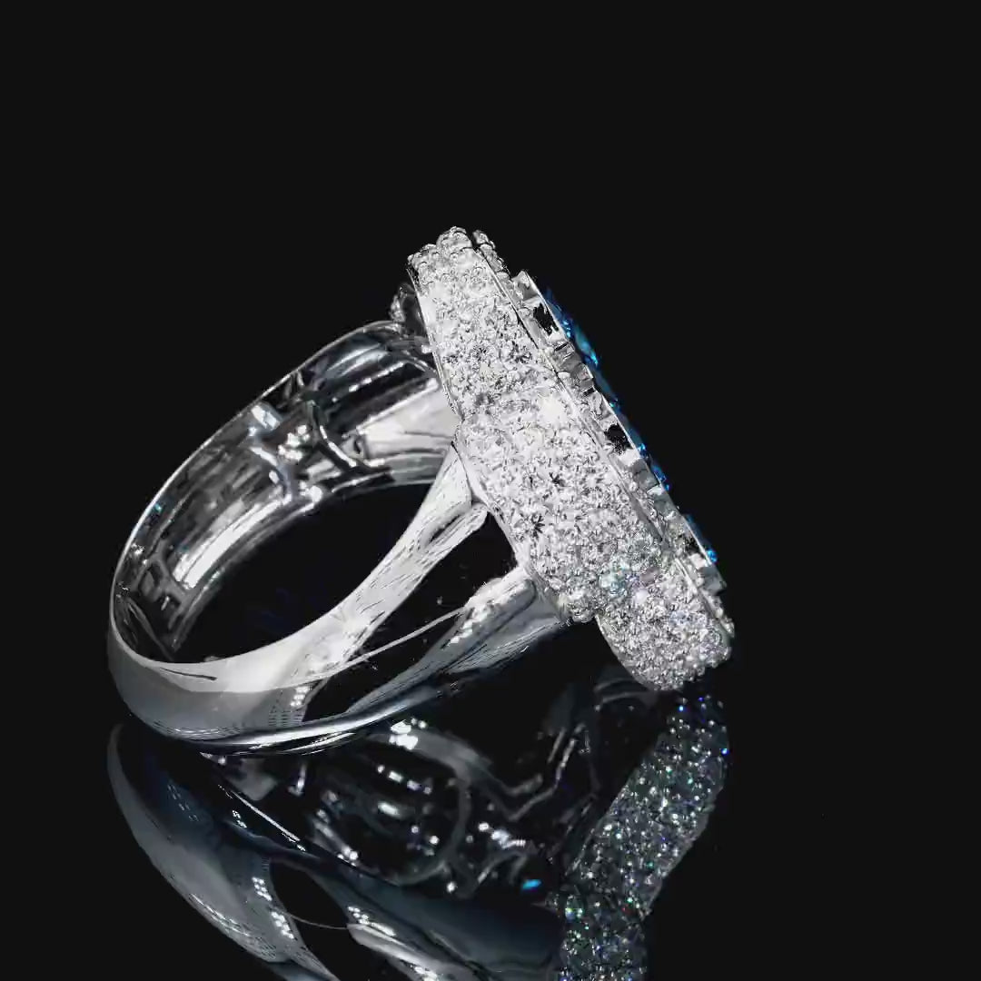 Crafted in 10K and 14K gold, this piece features a total diamond weight of 6.55 CTW and a gross weight of 11.24 g, it measures 19.9 mm × 4.8 mm.