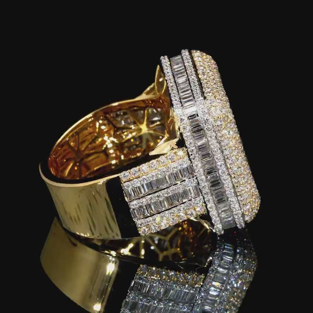 Crafted in 10K and 14K gold, this piece features a total diamond weight of 6.96 CTW and a gross weight of 15.03 g, it measures 21.6 mm × 7.6 mm. |