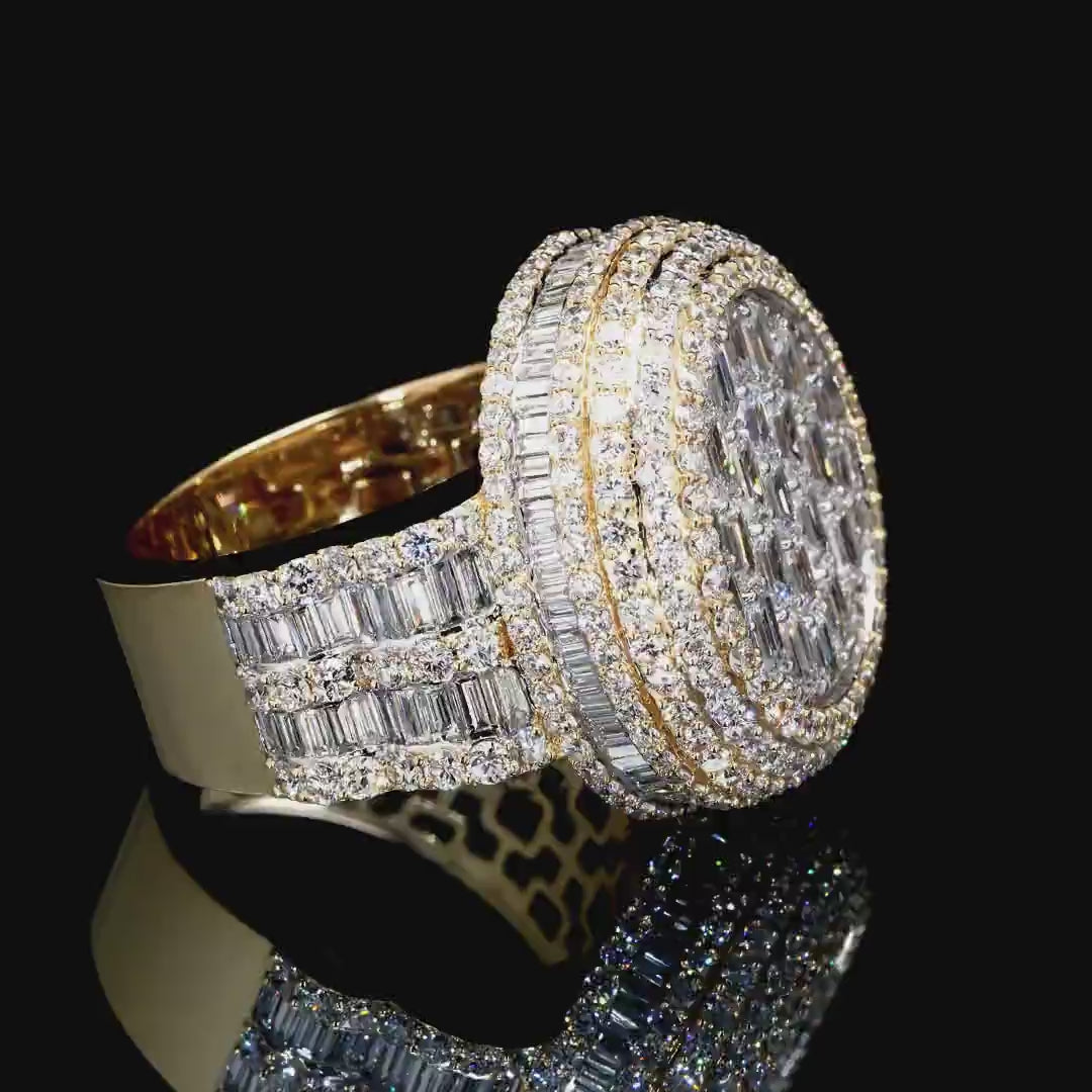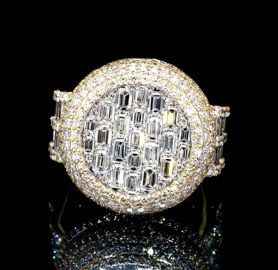 Crafted in 10K and 14K gold, this piece features a total diamond weight of 8.40 CTW and a gross weight of 15.94 g, it measures 23.6 mm × 8.2 mm. |